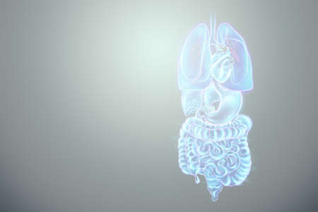 3d human model with inner organs inside. Medical anatomical background with copy space for text.
