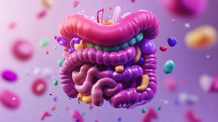 A vibrant and colorful 3D illustration depicting abstract representations of human organs and cells, showcasing intricate details and textures in a dynamic composition.
