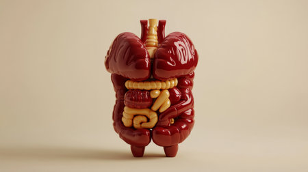 A detailed and colorful anatomical model showcasing human organs including lungs, heart, kidneys, and digestive system, perfect for educational and medical purposes.