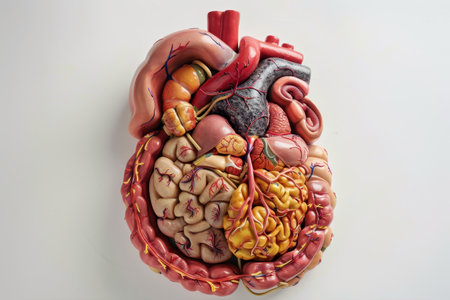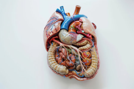 A close up of a heart and its internal organs. Concept of curiosity and wonder about the human body and its intricate workings