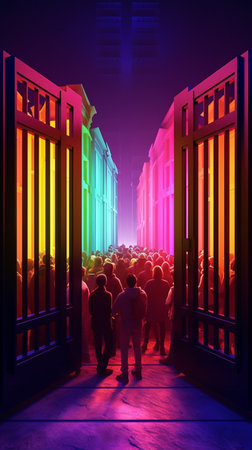 A striking array of colorful doors showcases a mix of vibrant shades against a sleek urban backdrop, highlighting modern architectural design and visual appeal.