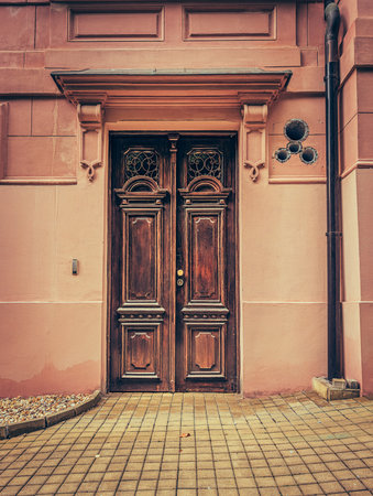Old wooden door in the city of Prague, Czech Republic, Europe.