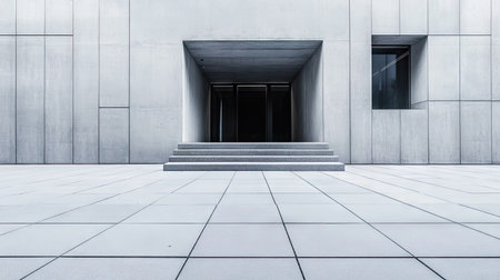 Smooth concrete pavement leading up to the entrance of a minimalist building, with no people or objects in sight
