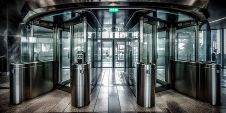 Entrance with turnstile gate. passanger