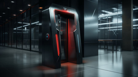 Interior of a modern office building with elevator. 3d rendering
