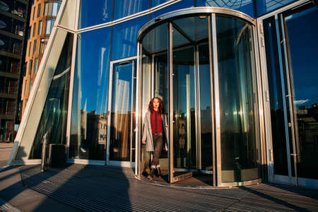 Business woman walking outside the office