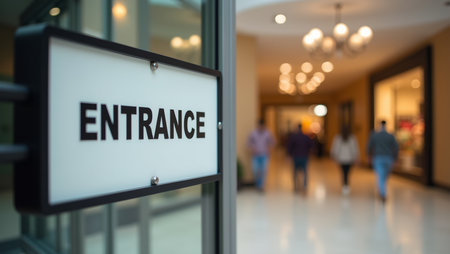 Urban Shopping Experience Entrance Sign at Modern Mall Entrance