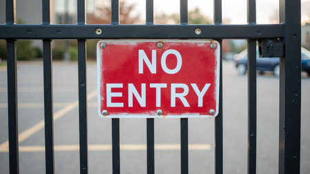 No Entry sign on metal gate in parking lot