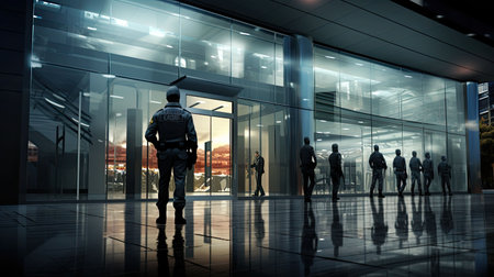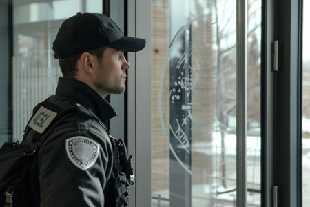 Security guard professional safety patrol man police employee mall safe business protect serve confident authority public space secure guarding agent staff shop convenience store grocery