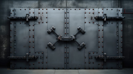 Dark closed door presenting a red do not enter sign, suggesting restriction, prohibition, privacy, or a secret, creating a feeling of mystery and exclusion in a somber environment