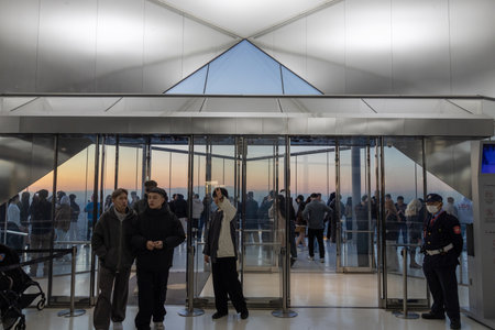 Tokyo, Japan- 16 Dec 2025: People visit to Shibuya Sky located in Shibuya, Tokyo. It is the most popular observation deck that provide the overview of the skyline of Tokyo.
