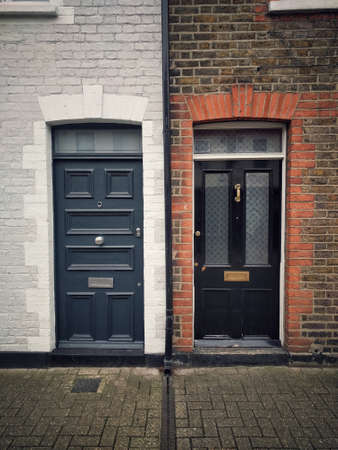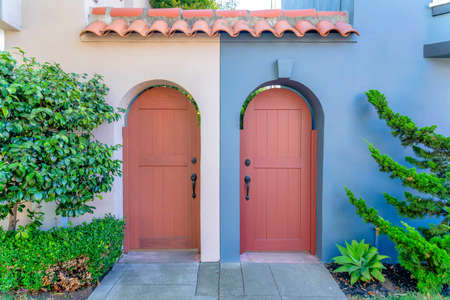 Front doors of two victorian style townhouses at San Francisco bay area in California