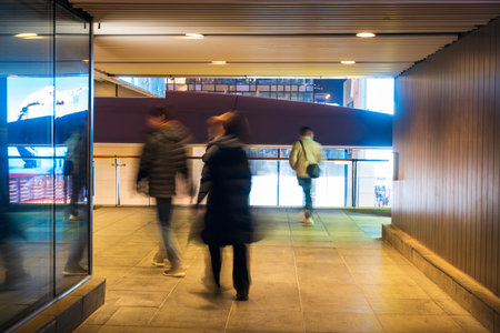 Blurred and defocused people walking in the passage