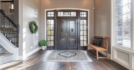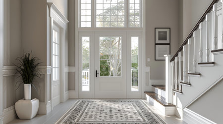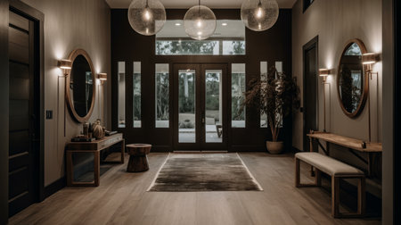 Elegant and spacious entryway with modern lighting. AI generated illustration