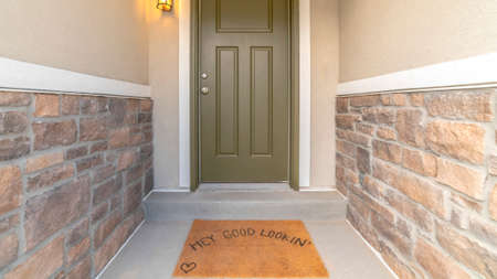 Pano Hey good looking words on the brown doormat by the front door of a home