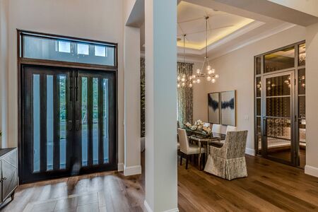 Guests are greeted at the two story foyer that connects to the formal dining room