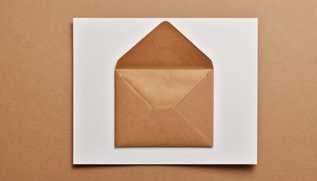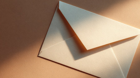 A beautifully crafted envelope rests on a soft surface, softly illuminated by natural light, showcasing elegant shadows. Ideal for themes of communication and creativity.