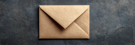 A brown envelope lies flat on a dark textured surface, suitable for sending letters or invitations. The simplicity of the design highlights its versatility for various occasions