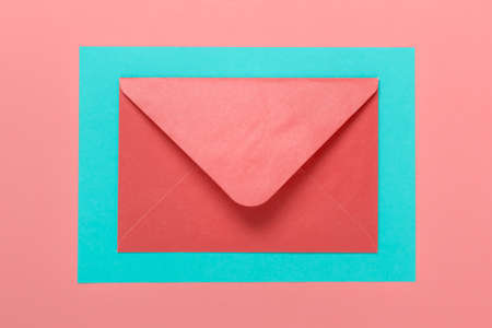 A charming envelope displayed on a soft pastel background featuring split colors. Ideal for creative projects and communications, the stylish design enhances any stationery concept.