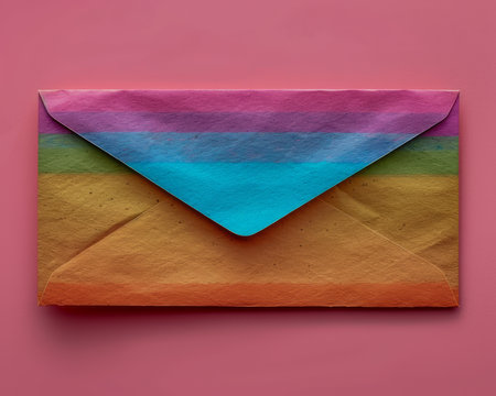 Vibrant Rainbow Colored Envelope on Pink Background, Stationery Image Showcasing Bright Colors and Creative Design for Invitations, Letters, and Artistic Projects, Perfect for Adding Joy and Happiness AI Generative