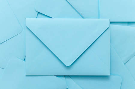 scattered blue mail envelopes background.