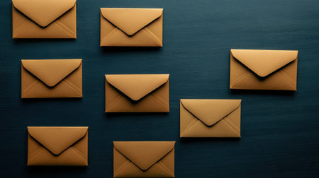 A captivating visual of scattered brown envelopes against a dark backdrop, showcasing themes of communication and creativity in a minimalistic and artistic composition.