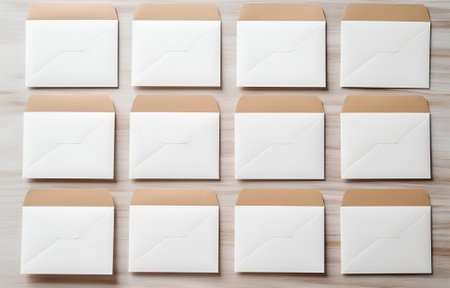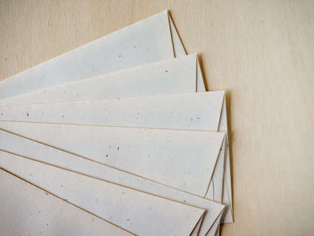 A vertical top view of cream envelopes background