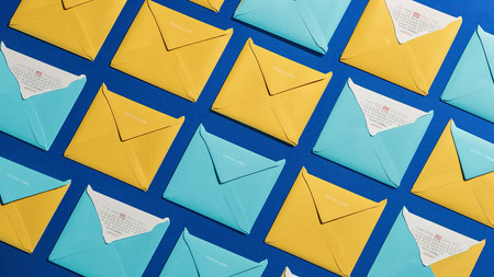 panoramic shot yellow blue envelopes