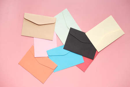 Various colors envelopes and greeting card on the table