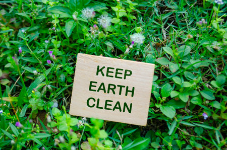Keep Earth Clean text on wooden block with customizable space for text. For a greener tomorrow concept