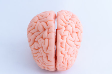 Human brain model on white background. Close-up. Copy space.