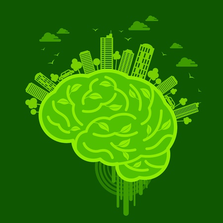Thinking green environmental concept with human mind and leaf