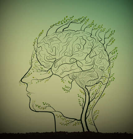 Man brain looks like tree with green branches, herbal medicine against brain disease, plant icon concept.