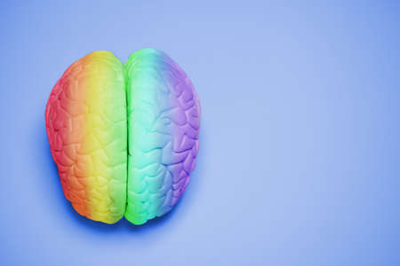Gay rainbow colors lgbt brain concept on blue