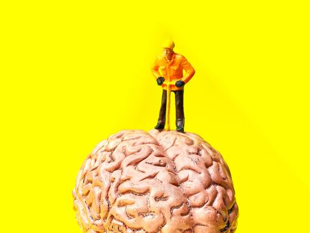 Excavator staff figure Digging the brain, brain care concept