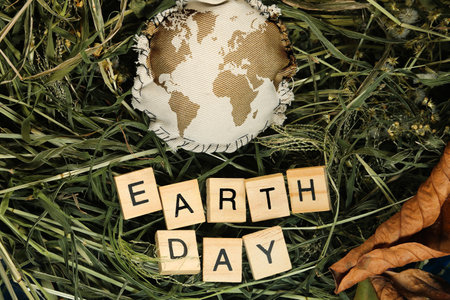 A small globe with a fresh sprout and a sign marking Earth Day sits in rich soil, symbolizing hope and sustainability for the planet's future.