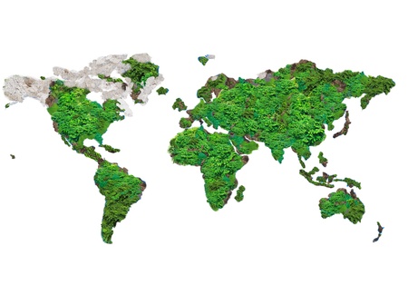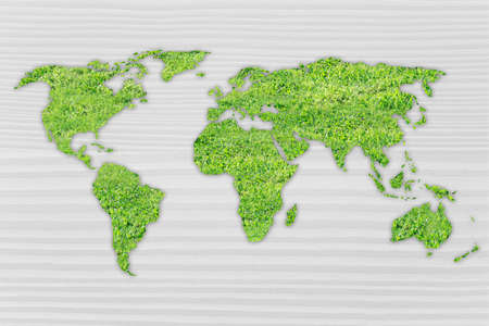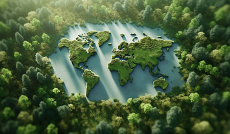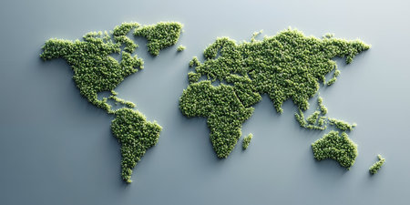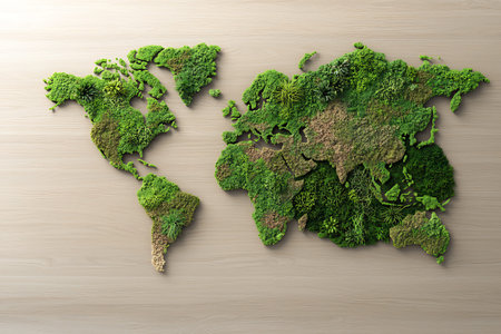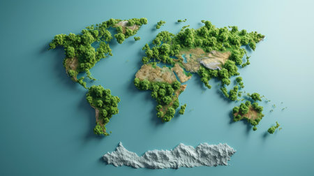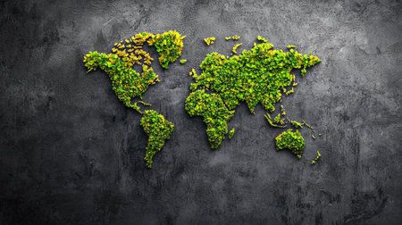 A stunning representation of a world map made entirely from various shades and textures of greenery, symbolizing the beauty and diversity of our planet's ecosystems.