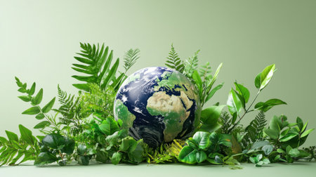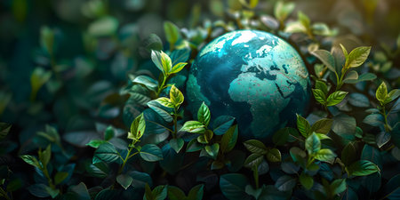 A stunning representation of Earth nestled among vibrant green plants. This image captures the essence of nature and highlights the beauty of our planet. Perfect for eco-conscious themes.