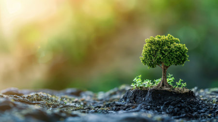 3D representation of a tree and restored land, showcasing land restoration and drought resilience for World Environment Day 2024