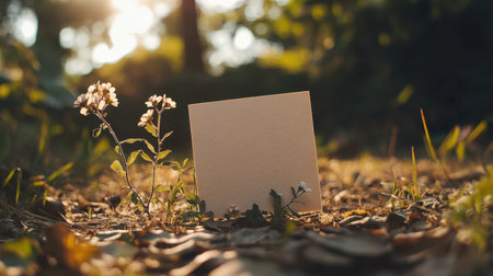 A beautiful handmade card featuring pressed flowers and a heartfelt love note, photographed outdoors in soft sunlight.