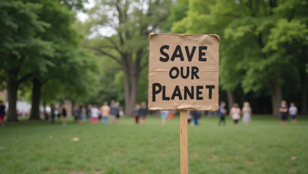 Eco friendly protest sign in park setting