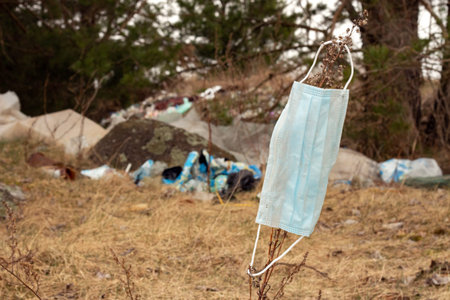 Mask. Discarded used medical masks. Coronavirus NCOV-19 contributes to environmental pollution. Environmental problem after the corona virus epidemic.