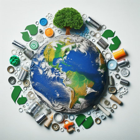 Conceptual image with Earth globe surrounded by different recycle related items