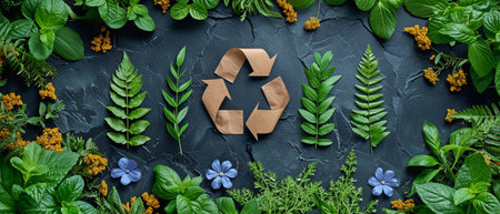 Green Leaf and Recycle Symbol in a Triptych Design for Eco-Friendly and Sustainable Living Concepts and Environmental Awareness Promotion