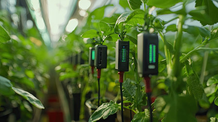 Advanced sensors attached to plants, monitoring growth conditions and sending data to a central system.
