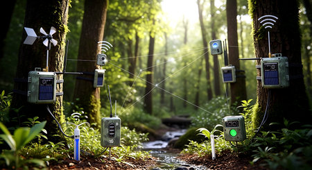 Digital composite of Network of remote control in the forest. 3d rendering