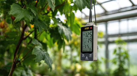 Greenhouse climate control sensors monitoring humidity and temperature digitally