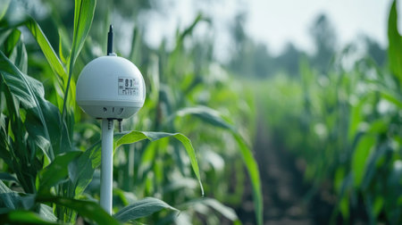 A digital weather station in a smart farm providing real-time climate data to help farmers make informed decisions.
