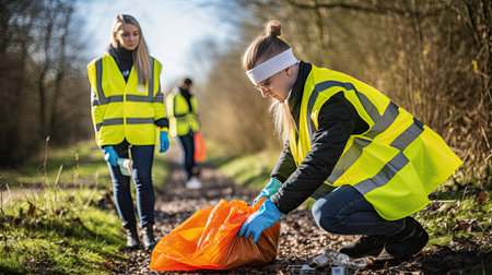 shot of a group of young people cleaning up trash at a cleanup event, created with generative ai