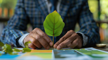 Concept of environmental conservation with green leaves in the palm of your hand
